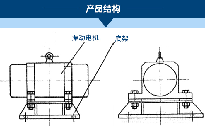 倉壁振動器為上部是振動電機,下部是底架,用高強度螺栓聯接。