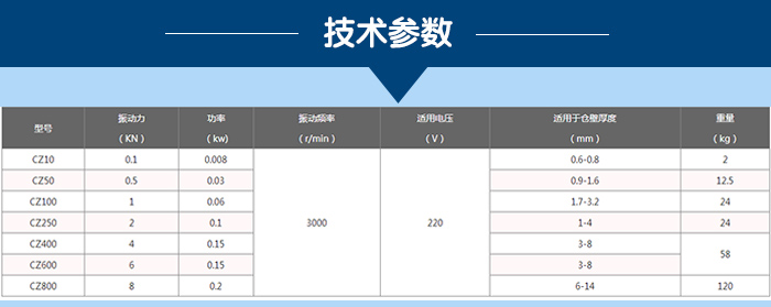 6、振動力的傳遞范圍一般為4~5m,用戶可根據料倉的大小,確定整個料倉應按裝的臺數。